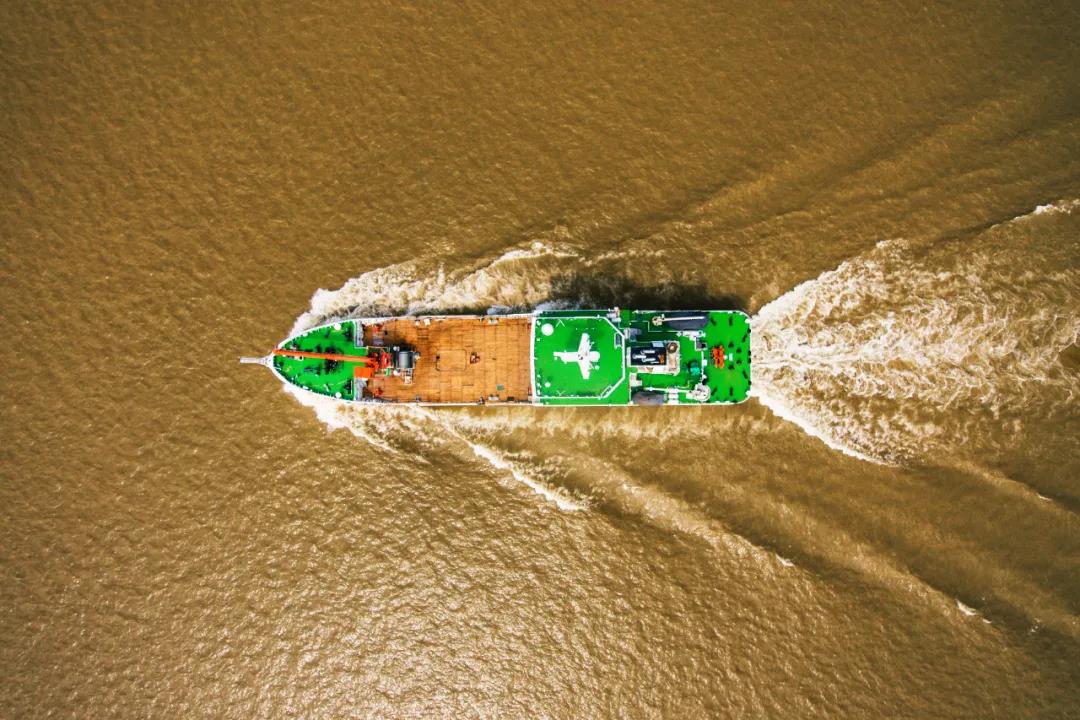伶仃洋上碧波蕩漾,中??蜐L船2號船一騎絕塵。順利完成試航節(jié)點的她宛如運動員沖刺終點的紅飄帶,帶著金秋收獲的喜悅和“大干120天”的沖勁奔赴遠方。