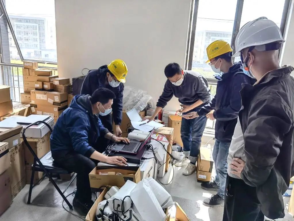 工程弱電安防系統是一塊“硬骨頭”。七一六所自3月22日起就連夜組織進行工程的弱電安防設計,23日開工建設,26日完成一號工程整體交付,30日完成三號工程弱電安防主體施工任務,連續幾個通宵;搶進度、抓質量、保安全,反反復復地設計改圖、不停地轉換工作界面、現場驗收過程出現的醫護新需求、施工現場造成的返工維修……現場團隊分成多個工作組,細化職責分工、積極統籌調度,他們咬牙堅持每天只睡一兩個小時,最終高質量完成了任務。