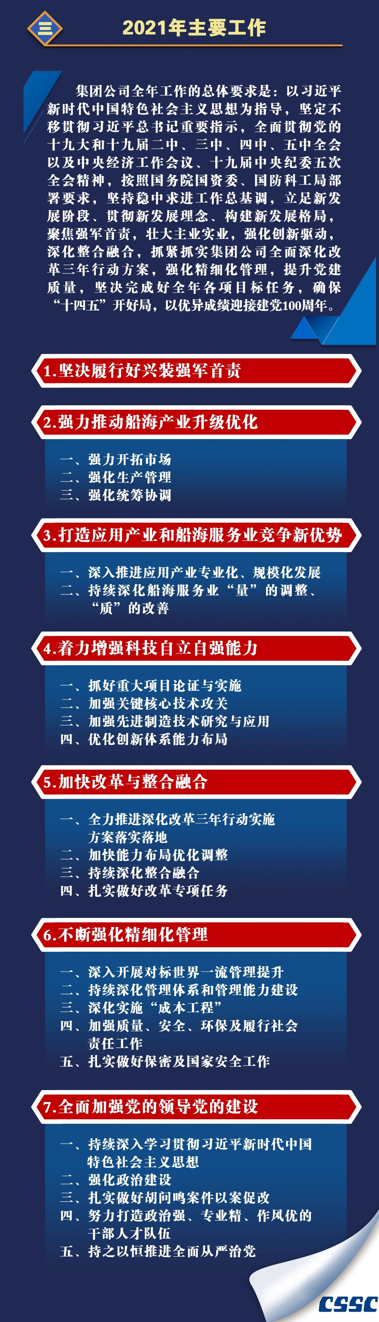 1月27日,在中國船舶集團(tuán)有限公司2021年度工作會議上,中國船舶集團(tuán)黨組書記、董事長雷凡培作了題為《貫徹新發(fā)展理念 強(qiáng)化精細(xì)化管理 為加快建設(shè)世界一流船舶集團(tuán)不懈奮斗》的工作報(bào)告。