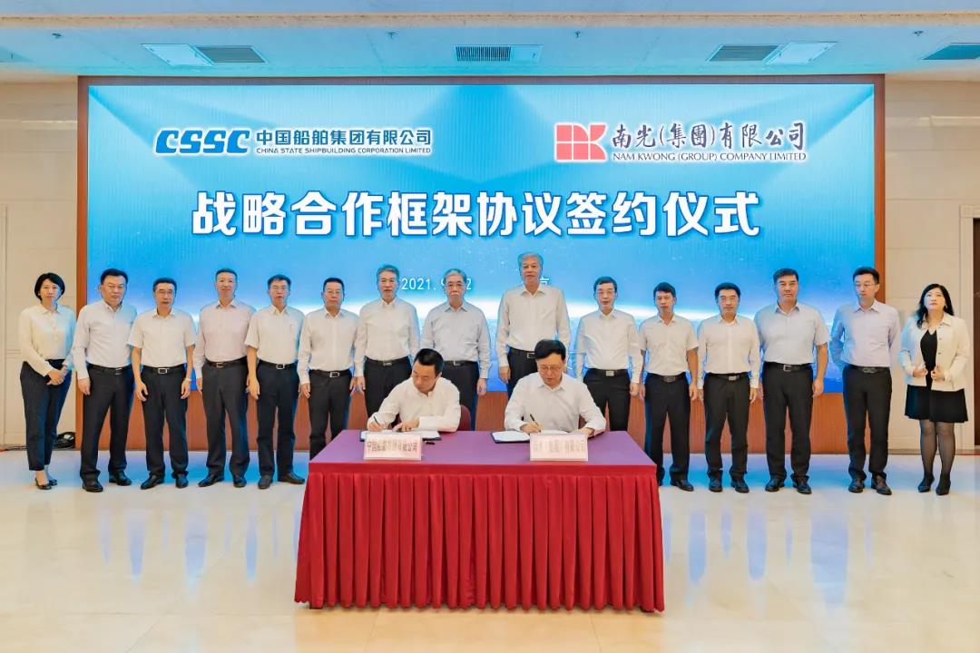 9月22日,中國船舶集團有限公司與南光(集團)有限公司在京簽署戰略合作框架協議。中國船舶集團黨組書記、董事長雷凡培,南光(集團)董事長傅建國出席簽約儀式。中國船舶集團黨組成員、副總經理盛紀綱,南光(集團)副總經理王彤彥分別代表雙方簽約。