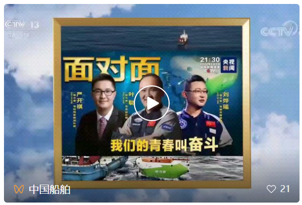 “奮斗者”號副總建造師 劉燁瑤:其實我不知道我要參與的是這么重要這么有挑戰性的項目,后來慢慢深入到這個項目里面去,了解得越來越多,覺得既然有這樣一個機會,就要把這個事情做好。“蛟龍”號是我們國家載人潛水器從零到一,從無到有的過程,前面可以說沒有先例可以借鑒,整個隊伍是一支非常年輕的隊伍,經驗都是一點點摸索出來的。