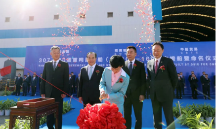 9月24日,中國船舶集團旗下大船集團聯(lián)合中船貿(mào)易為招商局集團旗下招商輪船建造的30萬噸VLCC “新伊敦”輪正式命名交付。同日,大船集團聯(lián)合中船貿(mào)易成功承接了招商輪船2艘17.5萬立方米大型LNG運輸船新造項目。中國船舶集團黨組副書記、總經(jīng)理楊金成,黨組成員、副總經(jīng)理孫偉,招商局集團黨委書記、董事長繆建民,黨委副書記、總經(jīng)理胡建華,紀(jì)委書記、董事段湘暉,黨委委員、副總經(jīng)理李百安出席儀式。繆建民為新船命名,楊金成、胡建華在儀式上致辭,段湘暉為新船砍纜。