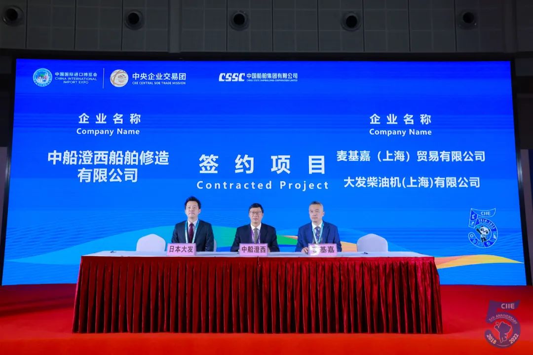 第五屆進博會期間,中國船舶集團旗下8家企業與18家國際合作伙伴先后進行21個項目的集中簽約,累計總金額達4.5億美元,同比增長205.5%。項目涉及柴油機組、發電機組、船用吊機、通導系統、電力推進系統、數字化網絡設備、LNG供氣系統、殷瓦鋼、再液化裝置等船舶建造領域的各類重要配套設備,為國際交易市場和全球供應鏈的日益繁榮貢獻中國船舶力量。