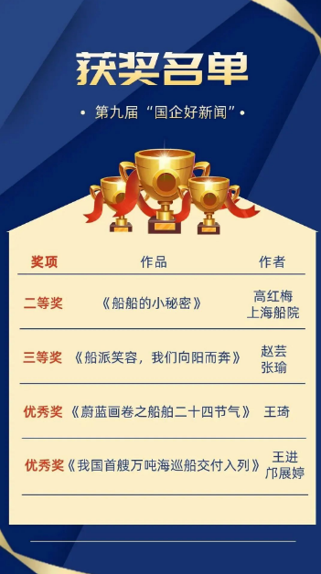 近日,第九屆“國企好新聞”獲獎(jiǎng)作品正式揭曉,中國船舶集團(tuán)斬獲4項(xiàng)大獎(jiǎng),涵蓋科普類、影音類、圖片類、文字類等多種體裁。其中,二等獎(jiǎng)1項(xiàng)、三等獎(jiǎng)1項(xiàng)、優(yōu)秀獎(jiǎng)2項(xiàng)。