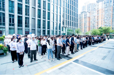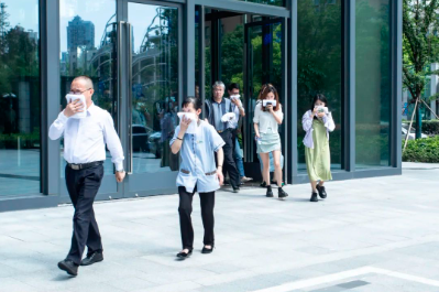 本次演練模擬總部1#樓電梯間、2#7層會(huì)議室發(fā)生火災(zāi),物業(yè)人員先后用滅火器、樓層消防水系統(tǒng)實(shí)施初期火災(zāi)撲救,火勢無法控制后立即拉響疏散警報(bào),同時(shí)向最近的消防站請求支援。全體人員按照疏散路線緊急有序完成了疏散。