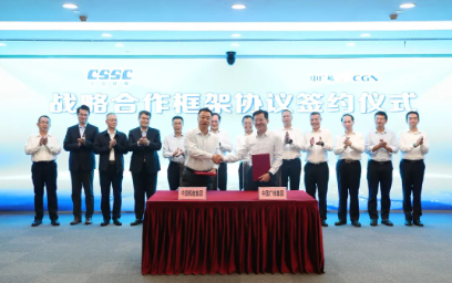 11月3日,中國船舶集團(tuán)有限公司與中國廣核集團(tuán)有限公司在上海簽訂戰(zhàn)略合作協(xié)議。中國船舶集團(tuán)黨組副書記、總經(jīng)理楊金成,中廣核黨委副書記、總經(jīng)理高立剛出席簽約儀式。中國船舶集團(tuán)黨組成員、副總經(jīng)理盛紀(jì)綱,中廣核黨委常委、副總經(jīng)理龐松濤分別代表雙方在協(xié)議上簽字。簽約前,雙方觀看了兩家企業(yè)宣傳片,并就進(jìn)一步加強溝通交流、深化多領(lǐng)域合作進(jìn)行了深入探討。