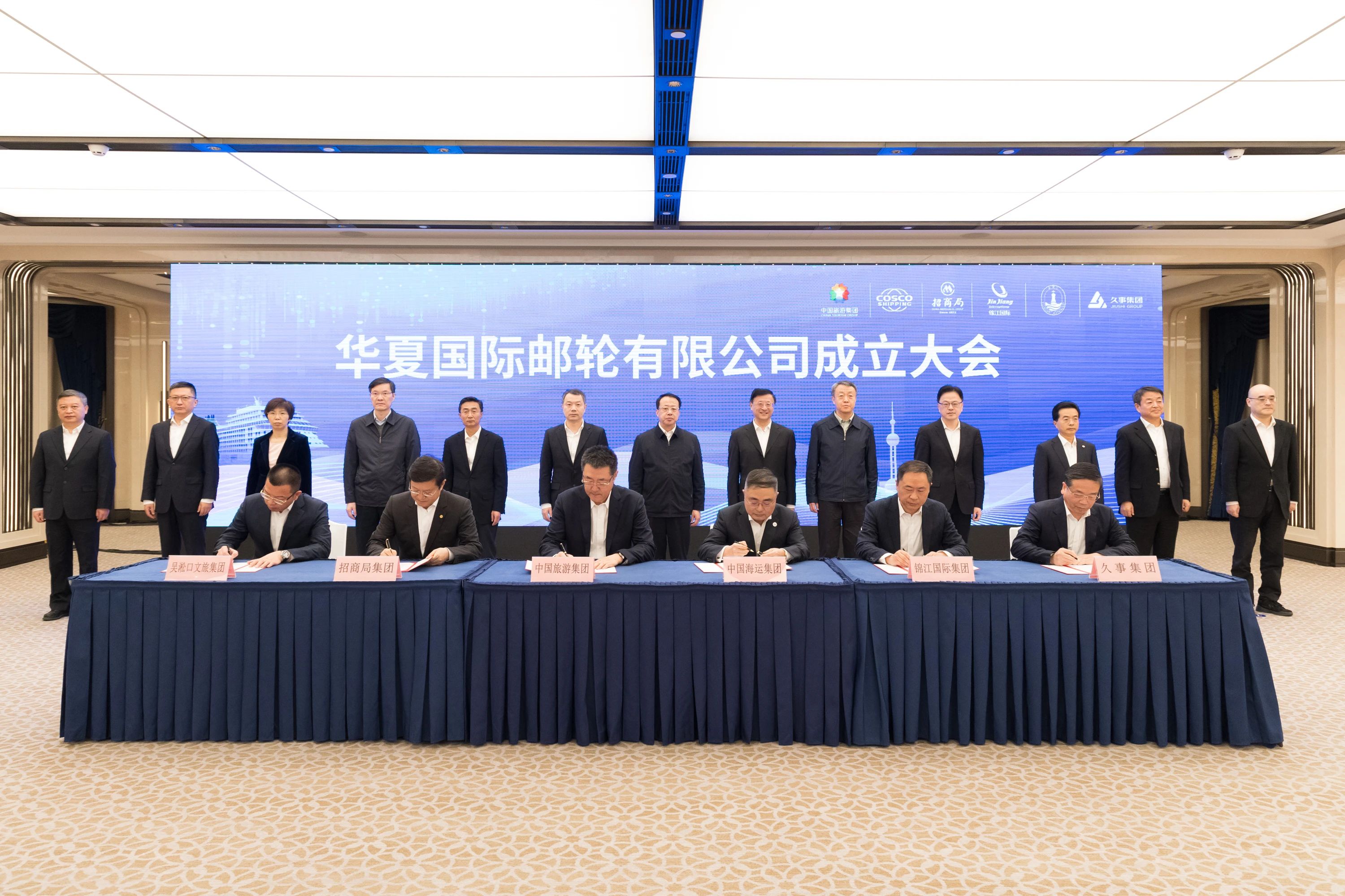 成立大會(huì)上,龔正、陳寅為華夏國際郵輪有限公司揭牌。中國旅游集團(tuán)、中國遠(yuǎn)洋海運(yùn)集團(tuán)、招商局集團(tuán)、錦江國際集團(tuán)、上海久事集團(tuán)、吳淞口文旅投資集團(tuán)相關(guān)負(fù)責(zé)同志簽約。