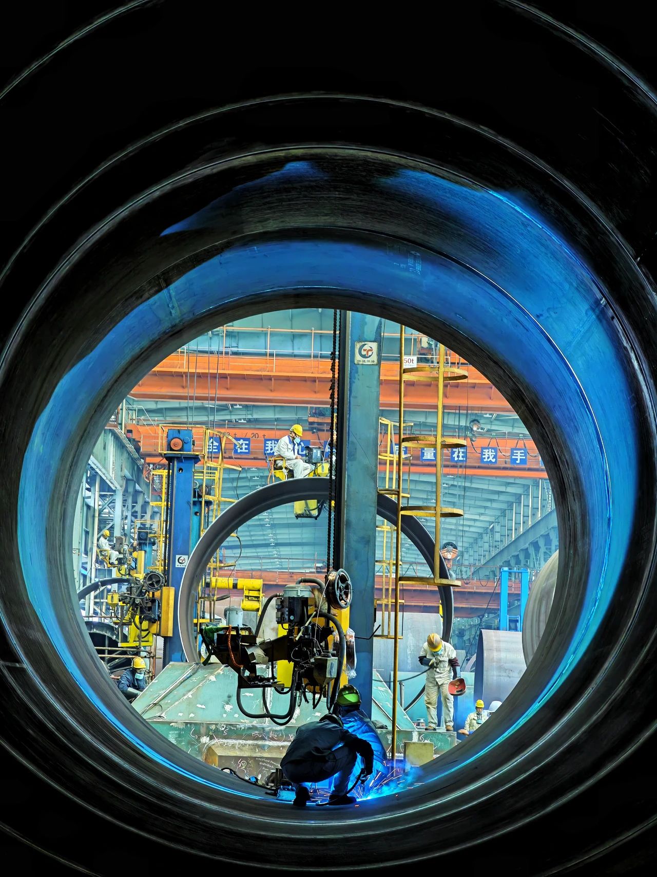 本作品拍攝于風電建造工業(yè)一線,通過以小見大的攝影方式,聚焦多崗位、多工種、多環(huán)境、多人物,圍繞風力發(fā)電塔建造日常工作中電焊、涂裝、起重吊運等作業(yè)工序進行了特寫記錄,真實地展現(xiàn)了新時代下風力發(fā)電塔建造工人的新風采。