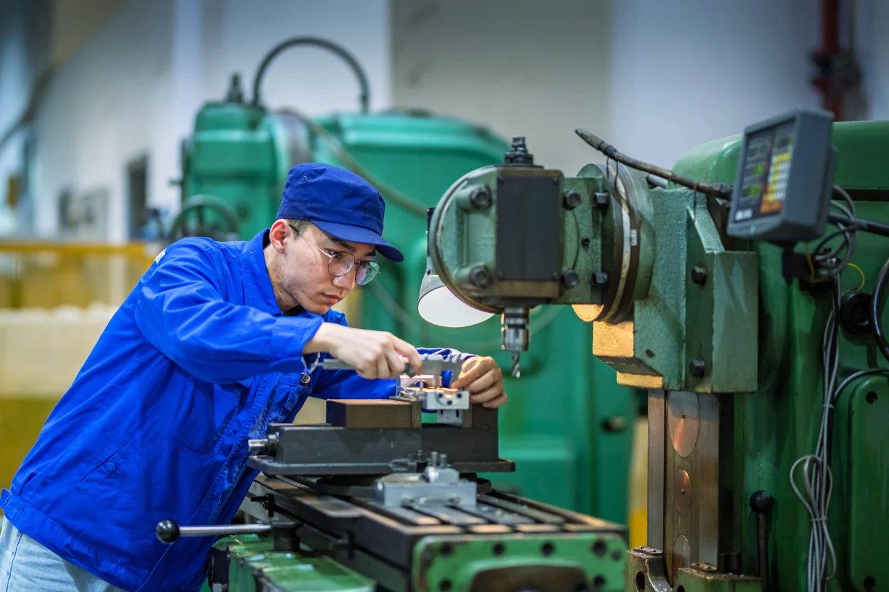 一位工人正在認真的檢查組裝好的齒輪箱,確保其高質量產(chǎn)出,驅動公司產(chǎn)業(yè)發(fā)展。