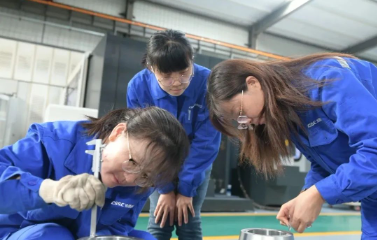 她們平均年齡28歲,主要負責船舶弱電接線、插頭焊接等工作。她們將女性特有的細致和堅韌織就在這項高精度工作中,并自主攻克光纖航空插頭接線難題。