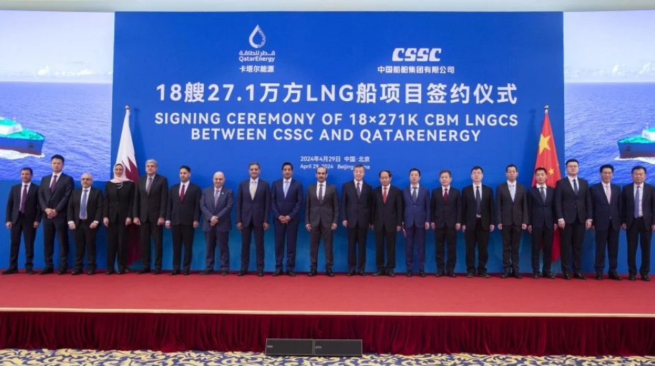 薩阿德·謝里達·阿爾卡比在致辭中表示,卡塔爾能源與中國船舶集團簽署18艘全球最大27.1萬立方米LNG船項目建造合同,創(chuàng)造了單筆新船訂單金額最高紀錄,是一次歷史性的突破。該批次船舶將支持卡塔爾能源在北部氣田擴大生產(chǎn)能力,滿足船隊長期的更新需求。希望卡塔爾能源與中國船舶集團今后能進一步深化務(wù)實合作,共同助力行業(yè)可持續(xù)發(fā)展。