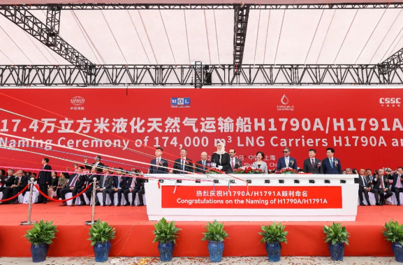 9月10日,中國船舶集團旗下滬東中華聯(lián)合中船貿易與卡塔爾能源液化天然氣公司,為“卡塔爾百船建造計劃——卡塔爾北部氣田擴能船舶購置項目”17.4萬立方米大型LNG運輸船首船“雷克斯·蒂勒森”號、2號船“烏姆·古瓦伊琳娜”號舉行命名儀式。卡塔爾能源事務國務大臣、卡塔爾能源總裁兼首席執(zhí)行官薩阿德·謝里達·阿爾卡比,中國船舶集團黨組成員、總會計師賈海英等出席命名儀式。