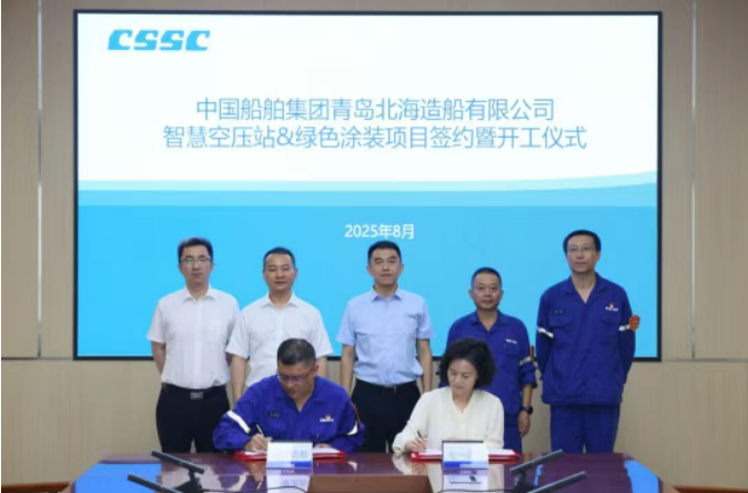 北海造船智慧空壓站改造、綠色智慧涂裝房改造試點和集中冷熱聯供試點項目,是中船集團節能降碳工作的重點工程。項目建成后,將顯著提升北海造船空壓站房、涂裝廠房和熱泵站房的設備能效水平、智能調控水平和精細化管理水平。同時,也將為中船集團加快推廣先進適用的綠色低碳技術發揮重要的示范引領作用,有效助力打造“貨架式”綠色技術資源庫,為中船集團乃至船舶行業的綠色低碳發展提供有力支撐。
