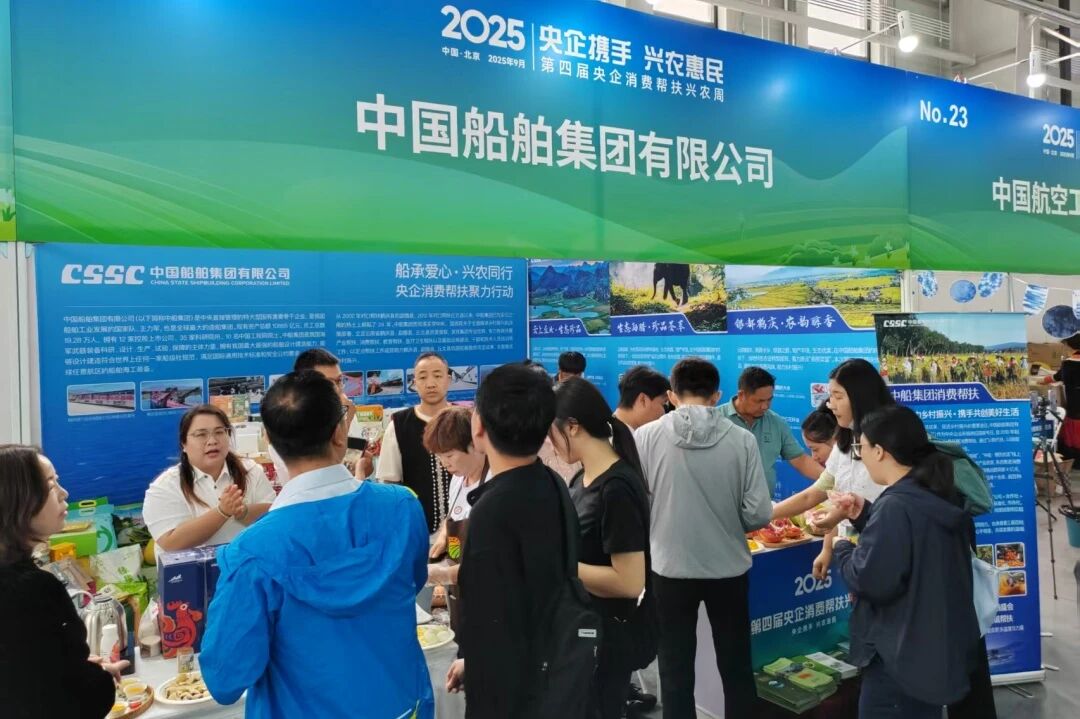 9月19日,以“央企攜手,興農惠民”為主題的第四屆“央企消費幫扶興農周”活動在北京正式啟動。中國船舶集團有限公司在同期舉行的特色農產品展銷會上精心布置了特色展區,現場展銷來自其定點幫扶的鶴慶、勐臘、丘北三縣的110款優質特色農產品。