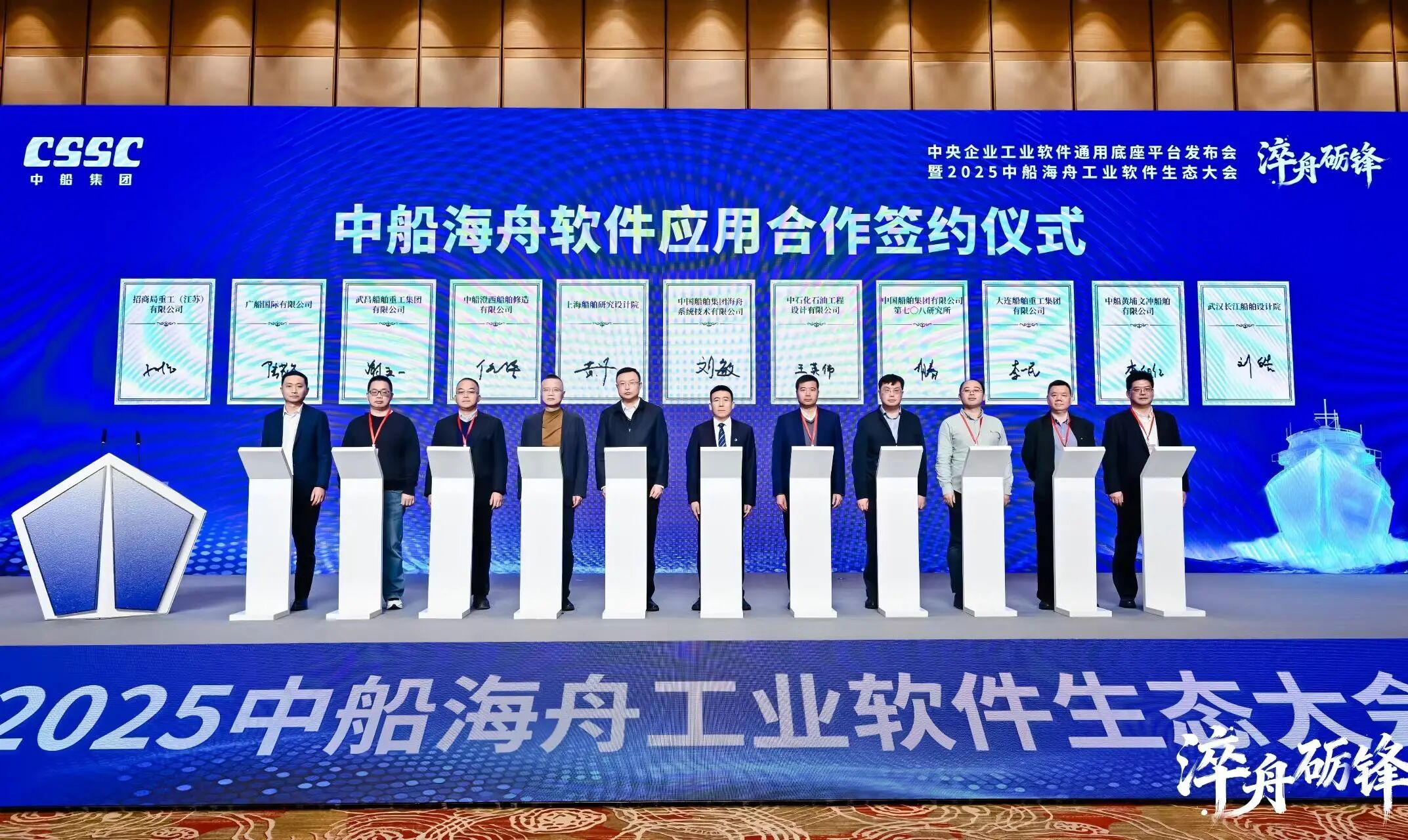 在與會嘉賓的共同見證下,中石化石油工程設計有限公司、武漢長江船舶設計院、招商重工(江蘇)有限公司以及中船集團內7家重要生態合作單位與中船海舟完成了中船海舟軟件應用合作簽約儀式。此次簽約覆蓋船舶設計、能源裝備、海洋工程等多個重點領域,標志著中船海舟產業協同生態進入規模化、實質性落地新階段。
