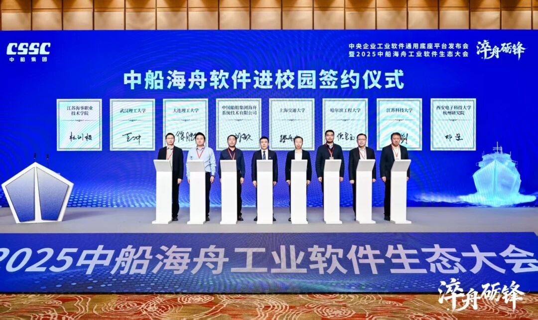 為深化“政產學研用”協同創新,中船海舟與上海交大、大連理工、哈工程等7所國家重點高校完成了軟件進校園簽約儀式,并攜手江科大、江蘇海院為珊瑚Marine實踐教學基地揭牌,推動人才培養與產業生態建設走深走實,為工業軟件發展注入持續動力。