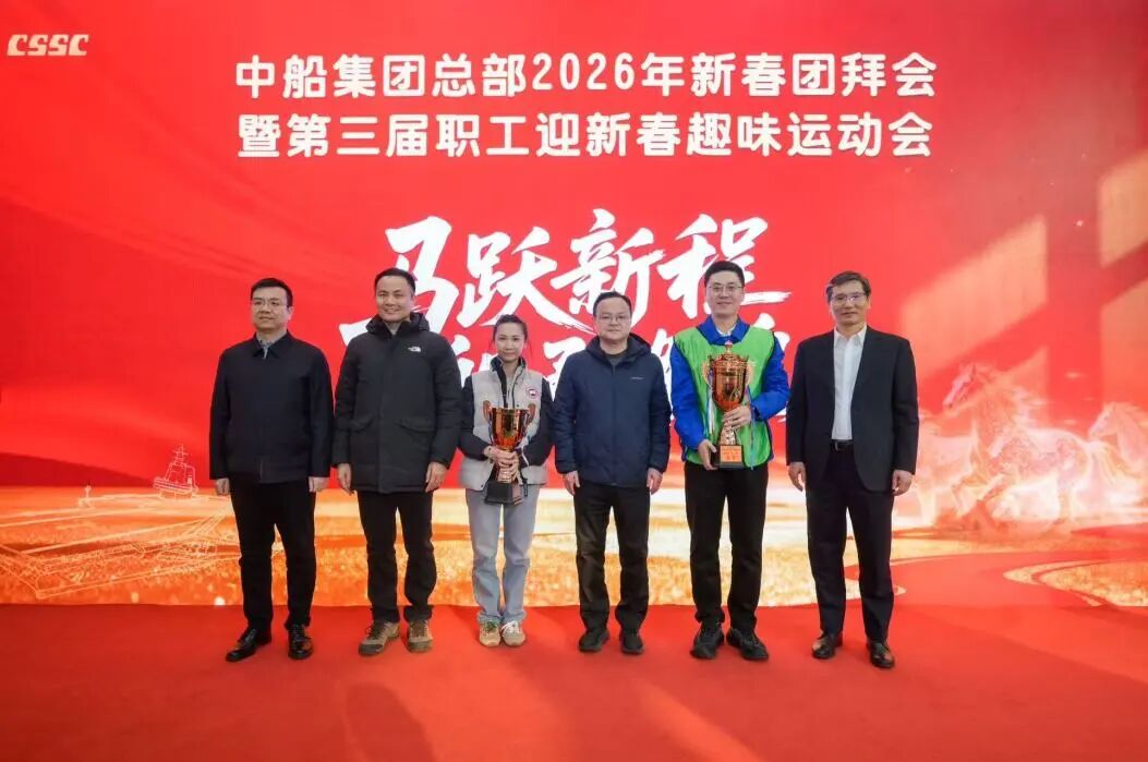 團拜會現場,集團公司領導為運動會獲獎隊伍代表頒獎。集團總部各部門和二級管理單位通過視頻集體“云拜年”,感受屬于中船人的龍馬精神與團圓暖意,充分展現了中船人在“十五五”開局之年,一馬當先開新局、矢志奮進建新功的昂揚風貌,凝聚起高質量建設世界一流船舶集團的磅礴力量。
