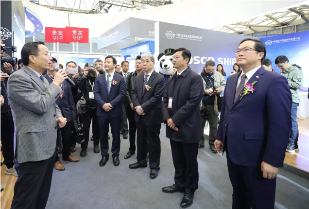 ????12月3日,交通運輸部總工程師姜明寶、上海市經濟和信息化委員會主任吳金城,以及陳冬、郭大成、李長印等領導在雷凡培、楊金成的陪同下,參觀中國船舶集團展位,聽取了參展情況介紹,對集團公司重組成立表示祝賀。