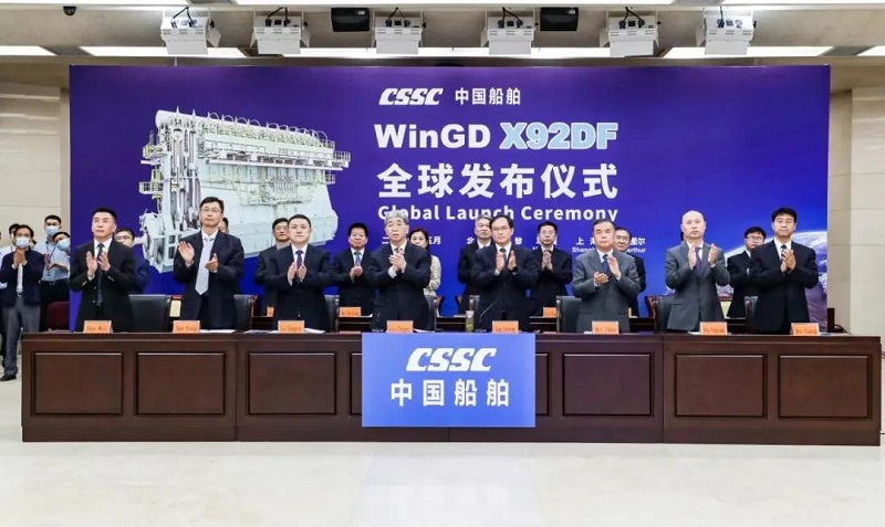 ????5月26日,由中國船舶旗下溫特圖爾發(fā)動(dòng)機(jī)有限公司(WinGD)自主研發(fā),上海中船三井造船柴油機(jī)有限公司建造,中船海洋動(dòng)力技術(shù)服務(wù)有限公司保障的目前世界最大船用雙燃料低速機(jī)WinGD X92DF正式向全球發(fā)布。中國船舶集團(tuán)董事長雷凡培出席發(fā)布儀式并講話,總經(jīng)理?xiàng)罱鸪芍鞒謨x式。國家相關(guān)部委、地方政府、船級社、航運(yùn)公司、造船公司等有關(guān)領(lǐng)導(dǎo)和專家,中國船舶集團(tuán)副總經(jīng)理馮永強(qiáng)、孫偉、杜剛出席發(fā)布儀式。