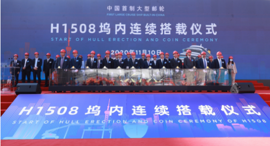 大型郵輪工程是中國(guó)船舶集團(tuán)貫徹習(xí)近平總書(shū)記重要指示精神、落實(shí)國(guó)家戰(zhàn)略、滿(mǎn)足人民美好生活需要的重大舉措,也是中國(guó)船舶集團(tuán)強(qiáng)化科技創(chuàng)新、促進(jìn)轉(zhuǎn)型升級(jí)、推動(dòng)高質(zhì)量發(fā)展的一號(hào)工程。2018年11月6日,中國(guó)船舶集團(tuán)與美國(guó)嘉年華集團(tuán)、意大利芬坎蒂尼集團(tuán)在首屆中國(guó)國(guó)際進(jìn)口博覽會(huì)上正式簽訂2+4艘13.5萬(wàn)總噸Vista級(jí)大型郵輪建造合同,并舉行了中國(guó)船舶集團(tuán)大型郵輪項(xiàng)目工程正式啟動(dòng)儀式。這是我國(guó)首次簽訂真正意義上的大型郵輪建造合同,開(kāi)啟了中國(guó)船舶工業(yè)建造大型郵輪的新時(shí)代。2019年10月18日,中國(guó)首制大型郵輪在外高橋造船正式開(kāi)工點(diǎn)火進(jìn)行鋼板切割,全面進(jìn)入實(shí)質(zhì)性建造階段。一年多來(lái),在中國(guó)船舶集團(tuán)的堅(jiān)強(qiáng)領(lǐng)導(dǎo)下,在中船郵輪科技發(fā)展有限公司、中船第九設(shè)計(jì)研究院工程有限公司、上海船舶工藝研究所等兄弟單位的大力支持下,外高橋造船經(jīng)受住了新冠肺炎疫情的洗禮和考驗(yàn),克服了物資采購(gòu)、薄板車(chē)間流水線(xiàn)建設(shè)滯后等一系列困難,一步一個(gè)腳印,如期實(shí)現(xiàn)了塢內(nèi)連續(xù)搭載總裝的里程碑節(jié)點(diǎn)。