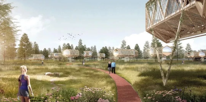 ????“棠上人家”方案以“浮木”為概念,旨在創(chuàng)造一種漂浮于自然之上、如樹木般生長(zhǎng)的建筑形態(tài)。設(shè)計(jì)以鄉(xiāng)村建設(shè)的天然環(huán)境保護(hù)和不規(guī)則點(diǎn)狀供地特點(diǎn)為切入點(diǎn),提出立足鄉(xiāng)村、面向未來的輕型建造策略,對(duì)結(jié)構(gòu)選型、空間組合、表皮構(gòu)造等方面進(jìn)行研究,打造綠色生態(tài)的新型鄉(xiāng)村建筑形態(tài)。
