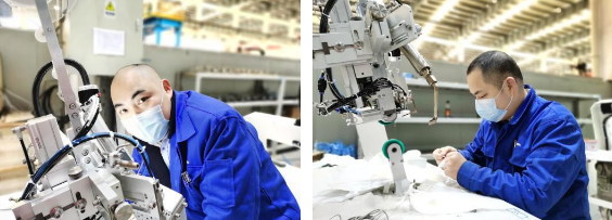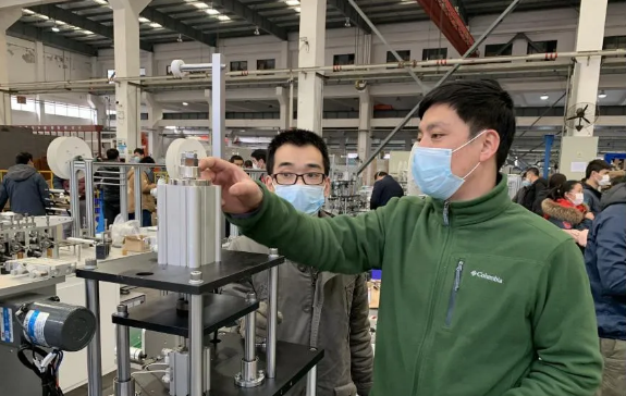 ????帶隊逆行的是鵬力塑造副總經理王仕杰,一人承擔所有的外圍協調工作,不僅管好技術團隊的吃住行和安全防疫工作,還找到了非常緊缺的試機無紡布原料和口罩耳繩焊接機,極大地支撐了后續研制生產工作。