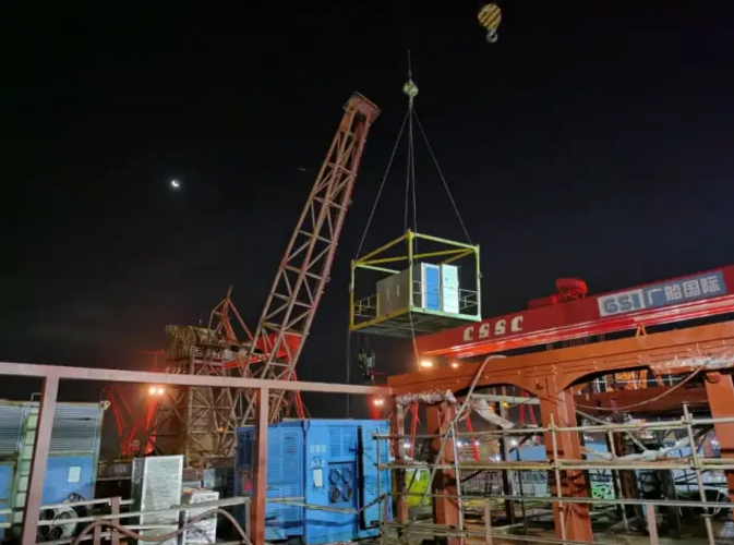 就在交船同一天,廣船國(guó)際在建的阿爾及利亞客滾船最后一個(gè)預(yù)制艙室單元完成吊裝進(jìn)艙,標(biāo)志著全船共360個(gè)預(yù)制艙室單元全部按計(jì)劃節(jié)點(diǎn)完成進(jìn)艙定位,比原計(jì)劃提前了整整10天。