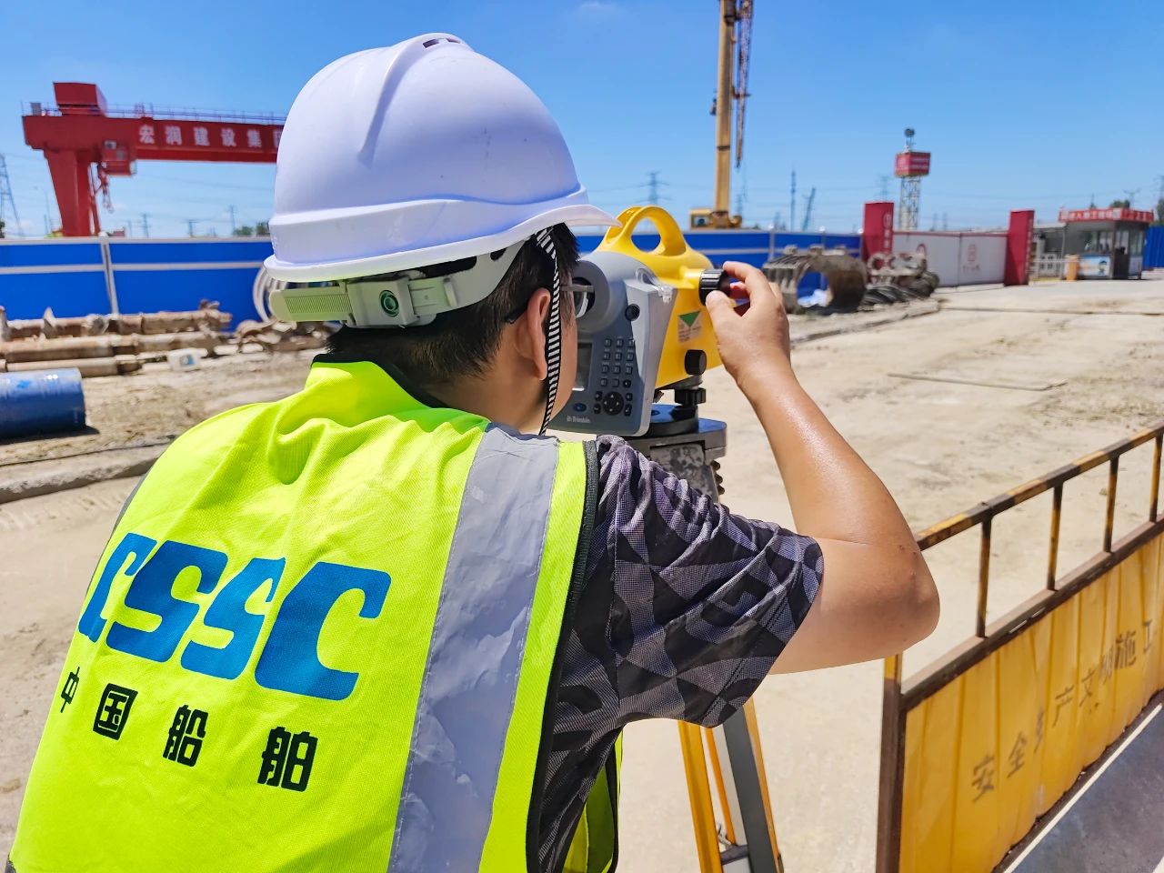 中船九院——子公司中船勘院崇明線軸線復測1標項目部頂著烈日進行復測。