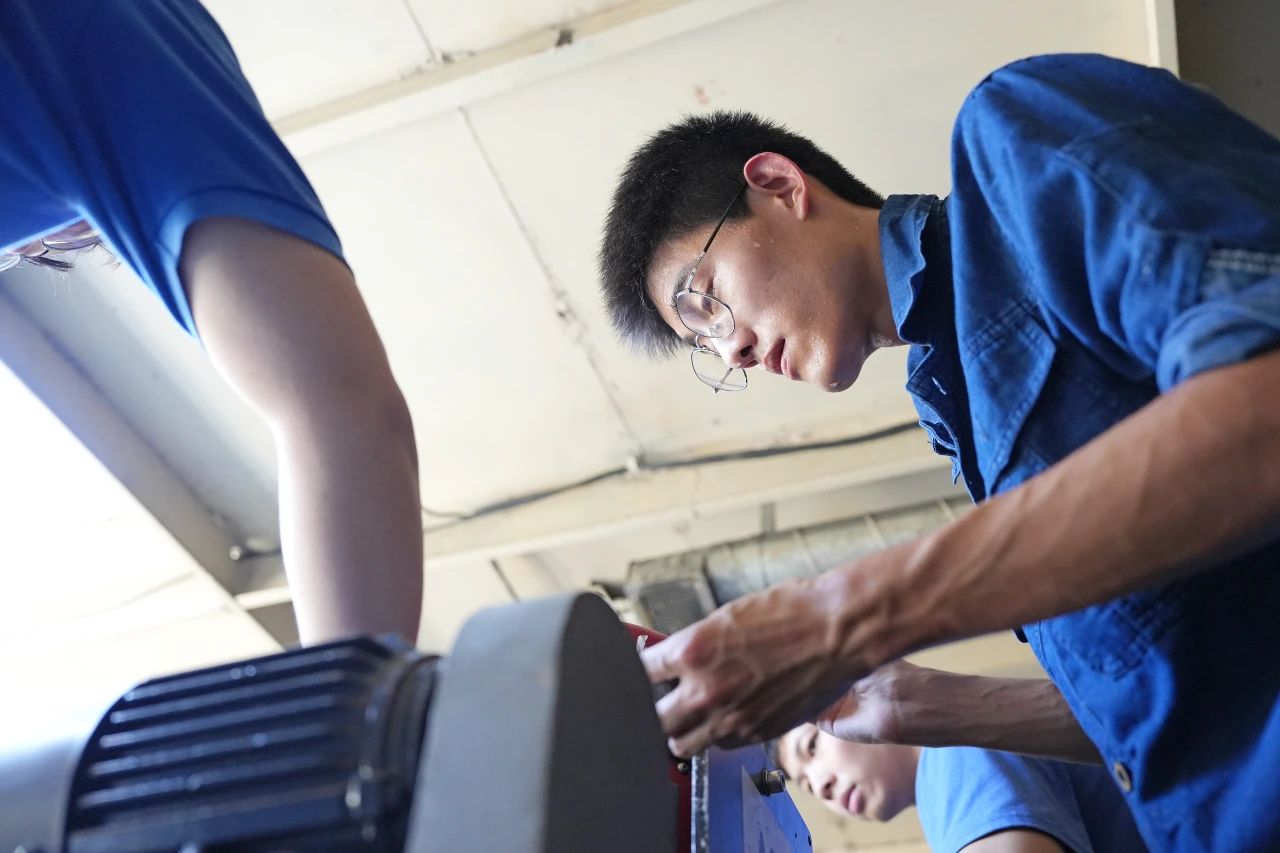 中船發動機——調試人員頂著高溫在認真安裝傳感器,汗水濕透了衣裳。
