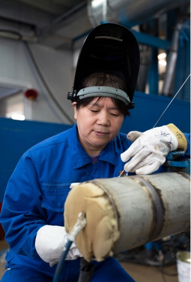 至今,朱瑞霞已經(jīng)參與了“遠望”系列船、“雪龍2”號、南昌艦等國家重點項目的焊接工作。她說,當時有人高度評價稱:“你焊的管子可以免檢。”但壓力也隨之而來,“我當時就想,船一出海就是半年,我的焊接要是出問題,就是人命關天。”正是因為這種“軸”,朱瑞霞先后攻克了鎳銅管焊接變形、HDR不銹鋼焊接、鈦合金焊接等一系列高難度問題。她主導研發(fā)了十余項焊接專利技術,攻克了薄壁管道焊接難題,還創(chuàng)新研制了特有的工裝,獲得外國專家的認可和推廣應用。