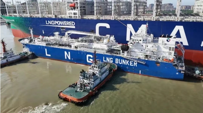 6月20日,全球首款江海直達型LNG加注船“淮河能源啟航”號在上海長興島順利完成對全球首艘23000TEU雙燃料超大型集裝箱船“達飛 雅克·薩德”號的LNG燃料補給作業(yè)。這兩艘不同領(lǐng)域的“冠軍”船舶均由中船集團旗下滬東中華建造,兩船首次“牽手”,為航運業(yè)綠色低碳發(fā)展留下佳話。