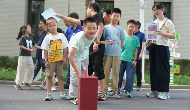 在講解員引導下,家屬們先后走進七二五所所部科技展廳與第六研究室,系統了解研究所六十余載發展歷程、研究領域、前沿技術攻關。從國家科技進步獎獲獎項目到“大國重器”關鍵材料突破,家屬們深刻感受到“艱苦創業、勇攀高峰”的奮斗者文化傳承。在親子活動區,“趣味投壺”“瘋狂九宮格射門”“百步穿楊”“急速投籃”等4項趣味游戲,瞬間點燃了職工與家屬們的參與熱情,大家紛紛組隊,積極投入到游戲中,通過趣味互動,進一步加深彼此間的理解與默契,情感也在歡聲笑語中得到了升華。