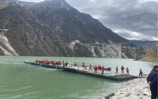11月11日,四川省阿壩州馬爾康市雙江口水電站紅旗橋發(fā)生垮塌事故。險(xiǎn)情發(fā)生后,中國(guó)船舶集團(tuán)有限公司旗下中船應(yīng)急研制的動(dòng)力舟橋緊急投入搶險(xiǎn)救援行動(dòng)中。