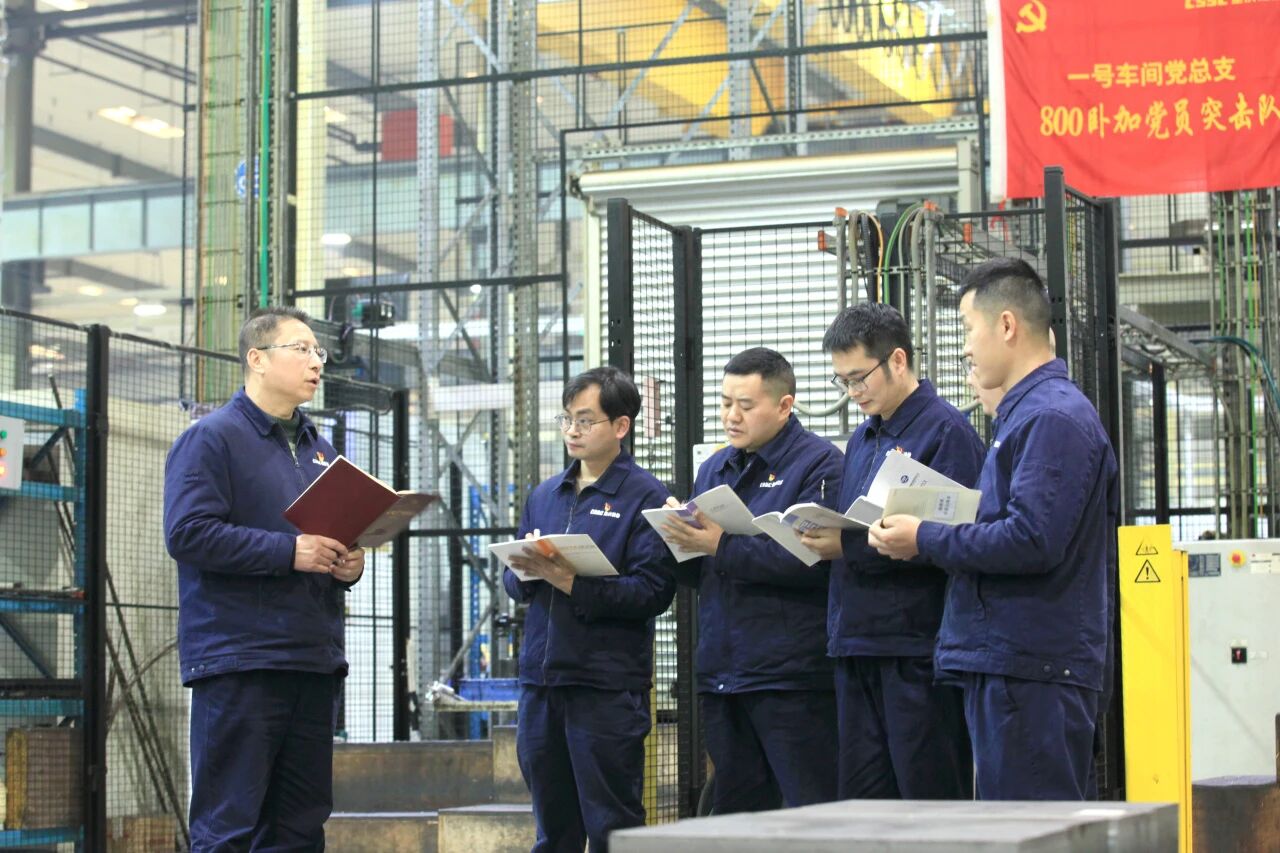 在重慶裝備重慶紅江的車間生產現場,全國人大代表、“中國工人大思政課”講師、中船集團首席技師傅國濤,在班前會上為工友們宣講黨的二十屆四中全會精神,認真學習全會提出的“加快建設制造強國”重要部署,讓黨的二十屆四中全會精神進基層進班組,為企業高質量發展貢獻力量。