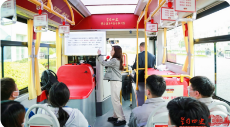 紅色巴士從浦東開發(fā)陳列館出發(fā),講解員帶領(lǐng)“乘客”一路學(xué)習(xí)小陸家嘴地標(biāo)背后的故事,感受國際金融中心的崛起,回顧浦東從阡陌農(nóng)田到高樓林立30年的發(fā)展歷程。窗內(nèi)窗外,歷史故事與魔都?xì)庀蠼豢棧呅熊嚒⑦厖⒂^、邊講課、邊互動(dòng)的學(xué)習(xí)形式,讓“四史”學(xué)習(xí)的過程更具代入感。本次“四史”學(xué)習(xí)不僅激發(fā)了青年的拼搏意志,增強(qiáng)了對城市發(fā)展及企業(yè)改革的認(rèn)同感,更堅(jiān)定了崗位立功的理想信念,引領(lǐng)青年不懈努力,為企業(yè)高質(zhì)量發(fā)展匯聚奮進(jìn)力量。