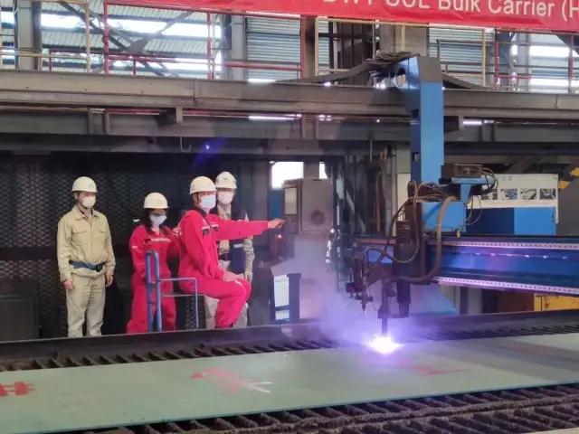 ????為按期實現(xiàn)建造目標(biāo),中船澄西成立了22號8.2萬噸船建造臨時黨支部和臨時團支部,制定黨建帶團建專項攻堅計劃,發(fā)揮黨員和青年團員旗幟作用。 在船臺搭載過程中,中船澄西克服疫情期間關(guān)鍵船用設(shè)備到貨晚、人員到位少等困難,齊心協(xié)力啟動建造“快進鍵”,不斷提高生產(chǎn)效率。