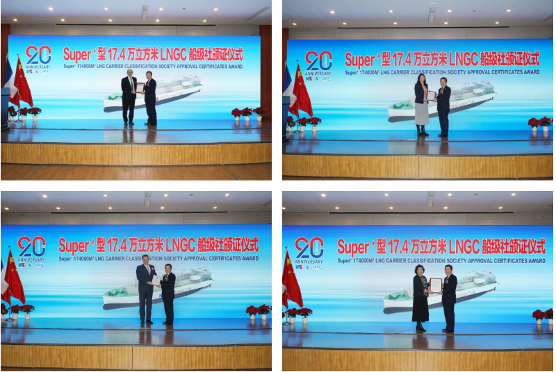 12月16日,由中國(guó)船舶集團(tuán)旗下滬東中華與法國(guó)GTT公司聯(lián)合研發(fā)的全球最新一代“長(zhǎng)恒系列”17.4萬立方米液化天然氣(LNG)運(yùn)輸船獲得美國(guó)船級(jí)社(ABS)、法國(guó)船級(jí)社(BV)、英國(guó)勞氏船級(jí)社(LR)、DNV等四家國(guó)際著名船級(jí)社頒發(fā)的船型設(shè)計(jì)通用認(rèn)可(GDA)、入級(jí)預(yù)先認(rèn)可(PCA)等證書。標(biāo)志著這款集最新設(shè)計(jì)理念、最優(yōu)技術(shù)裝備、最強(qiáng)環(huán)保性能、最具前瞻性于一身的“長(zhǎng)恒系列”船型達(dá)到可以實(shí)船建造的狀態(tài)。這是世界LNG船發(fā)展史上的重大事件,更是中國(guó)在LNG船研發(fā)設(shè)計(jì)領(lǐng)域從跟跑、并跑到領(lǐng)跑進(jìn)程中一座重要的里程碑。