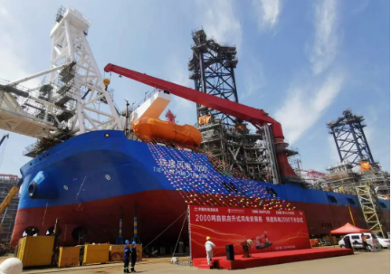 1500噸風電安裝船“藍鯤01”號配備了1500噸繞樁式主起重機,具備20兆瓦等級海上風機安裝作業(yè)能力。其樁腿長度達到了125米,最大作業(yè)水深可達90米,是我國自主研發(fā)設計、具有完全自主知識產(chǎn)權的第四代風電安裝船。