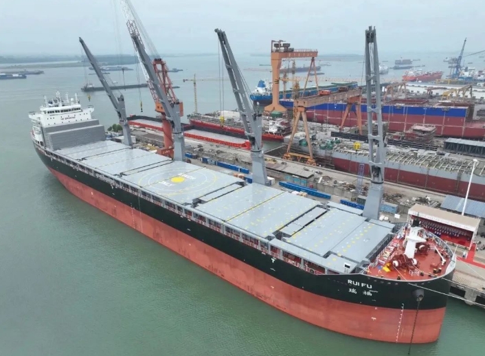 日前,中船集團(tuán)上船院研發(fā)設(shè)計(jì)62000噸重吊多用途船OCTOPUS 62 “明融”號(hào)、“瑞?!碧?hào)命名交付。