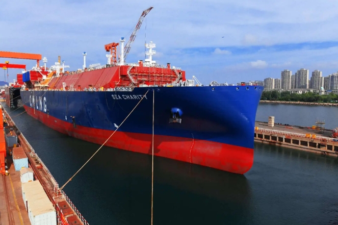 為招商輪船建造的17.5萬立方米液化天然氣運輸船7號船提前年度計劃19天出塢。該船從艏艉兩大段對接到出塢共57天,對比同塢建造的前一艘系列船縮短15天。