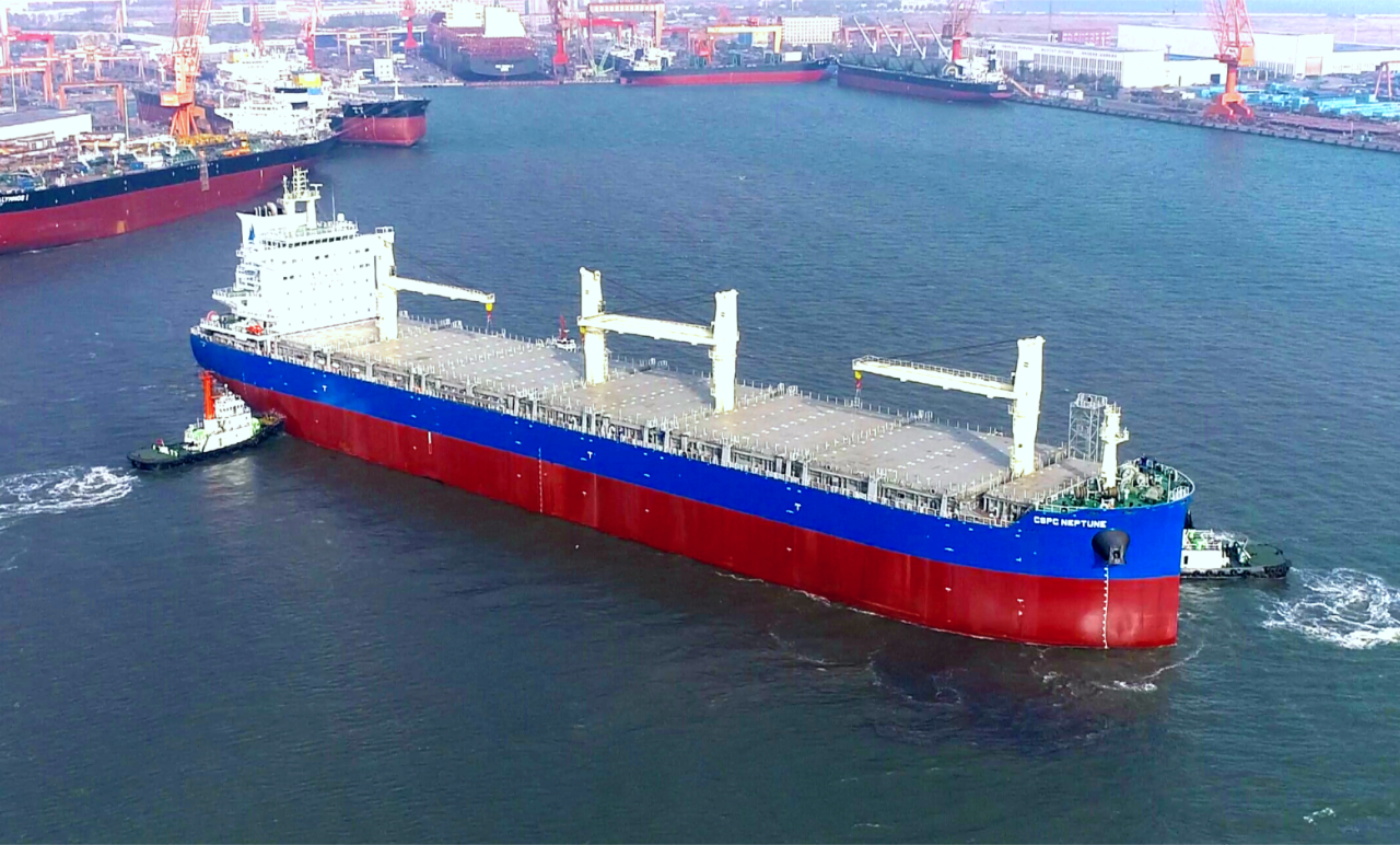 12月5日,中船集團旗下大連造船山船重工為中信金融租賃有限公司建造的8.5萬噸多用途紙漿運輸船5號船“海王星”號命名交付。