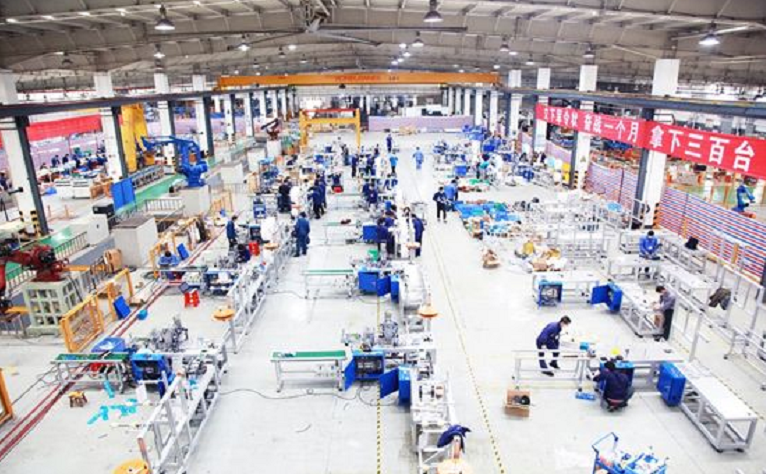 ????通用技術(shù)集團(tuán)僅用9天成功下線防護(hù)服壓條機(jī)并實(shí)現(xiàn)量產(chǎn)。目前全自動(dòng)平面口罩機(jī)完成樣機(jī)裝配,立體口罩機(jī)也即將下線。
