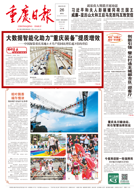 近日,重慶日報頭版頭條以《大數據智能化助力“重慶裝備”提質增效——中國海裝重慶基地1-5月產值同比增長超3倍的背后》,為題對中國船舶集團旗下中國海裝進行了報道,文章對后疫情時代,中國海裝如何履行央企責任,做好“六穩”工作,落實“六保”任務,助力重慶裝備制造業穩步復蘇,奮力實現高質量發展的舉措與成效進行了深入分析。