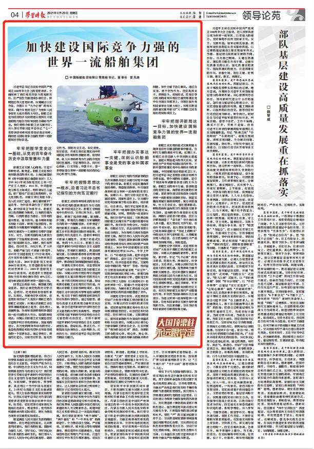 9月29日,《學(xué)習(xí)時(shí)報(bào)》刊發(fā)中國(guó)船舶集團(tuán)黨組書(shū)記、董事長(zhǎng)雷凡培署名文章《加快建設(shè)國(guó)際競(jìng)爭(zhēng)力強(qiáng)的世界一流船舶集團(tuán)》,現(xiàn)全文分享如下。
