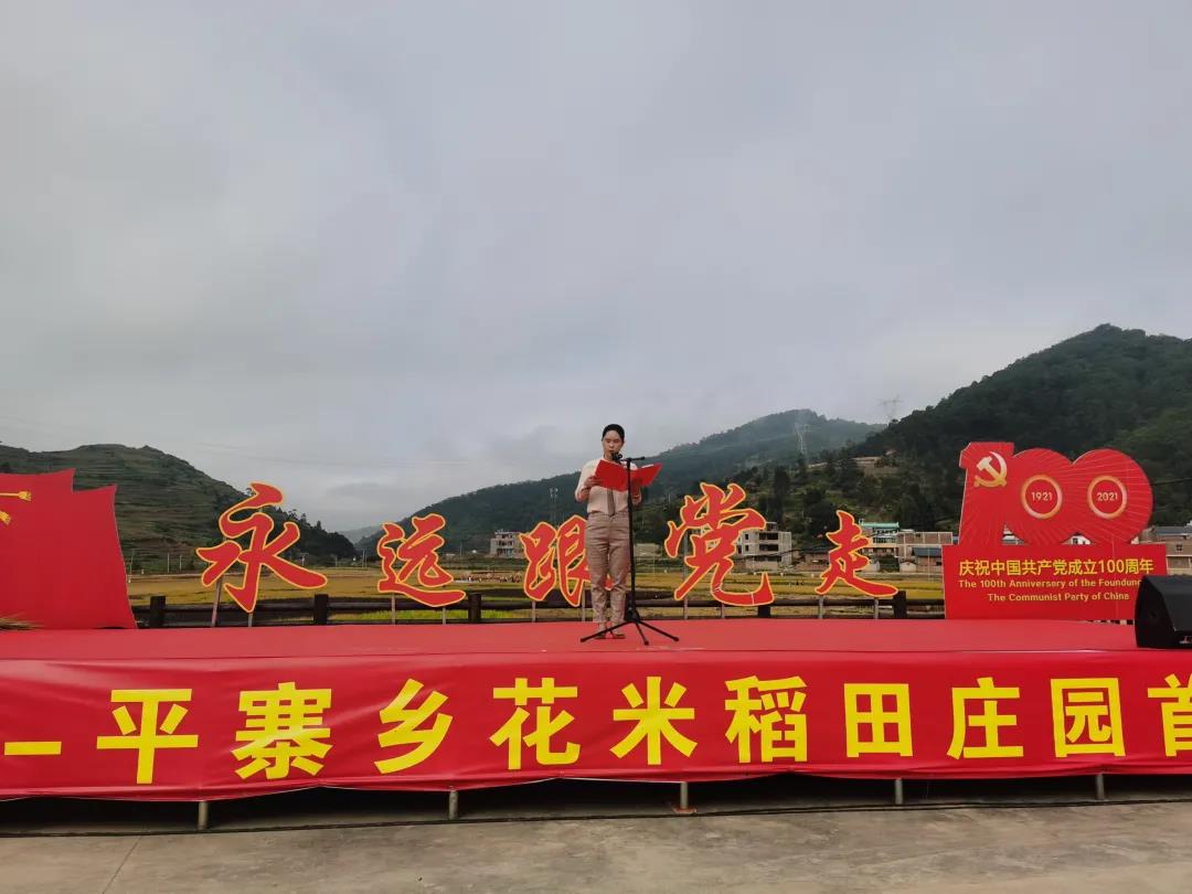 以節聚勢,以節聚產,以節聚人,平寨鄉壯族百姓以獨特的方式,慶祝祖國生日,分享豐收喜悅,總結鞏固脫貧攻堅成果與鄉村振興有效銜接經驗,探索綠色發展、質量發展新思路,實踐對口幫扶、內生動力資源增效新方法,構建產業發展、農旅融合鄉村振興新路徑,譜寫平寨發展新篇章。平寨鄉黨委書記陸華麗在開幕式致辭中指出,舉行花米稻田莊園首屆新米節,是平寨鄉“以節聚勢,以節聚人,以節聚產”的重要舉措。近年來,平寨鄉堅持黨建引領,務實創新的工作作風,各項事業蓬勃發展。脫貧攻堅勇創佳績,人居環境不斷改善,產業生態綠色發展,文化事業生機勃勃,民族團結碩果累累,為鄉村振興戰略的實施打下了良好的基礎。