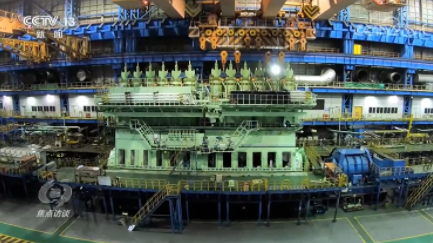 邵煜:“一個(gè)氣缸套的重量將近20噸,而氣缸套上面還組裝有氣缸蓋、排氣閥、噴油器等一系列組件,加起來大約就有一百多個(gè)。”