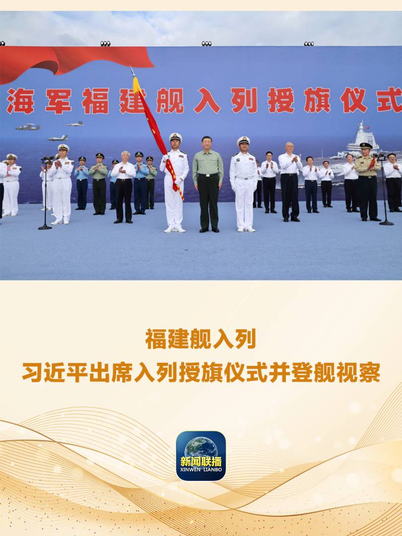 我國第一艘電磁彈射型航空母艦福建艦入列授旗儀式5日在海南三亞某軍港舉行。中共中央總書記、國家主席、中央軍委主席習(xí)近平出席入列授旗儀式并登艦視察。