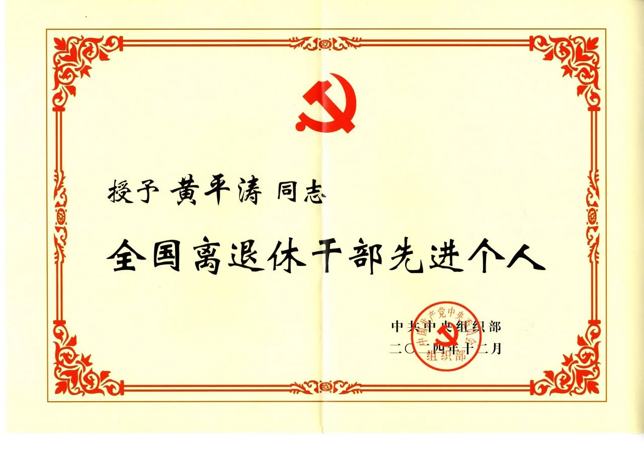 日前,習近平總書記在北京人民大會堂親切接見了全國離退休干部先進集體和先進個人受表彰代表,向他們表示熱烈祝賀,希望他們弘揚光榮傳統、永葆政治本色,繼續為以中國式現代化全面推進強國建設、民族復興偉業作出積極貢獻。此前一天,全國離退休干部先進集體和先進個人表彰大會在北京召開,表彰了150個離退休干部先進集體和450位離退休干部先進個人,其中,中國船舶集團有限公司老領導、優秀共產黨員黃平濤同志獲得“全國離退休干部先進個人”稱號。
