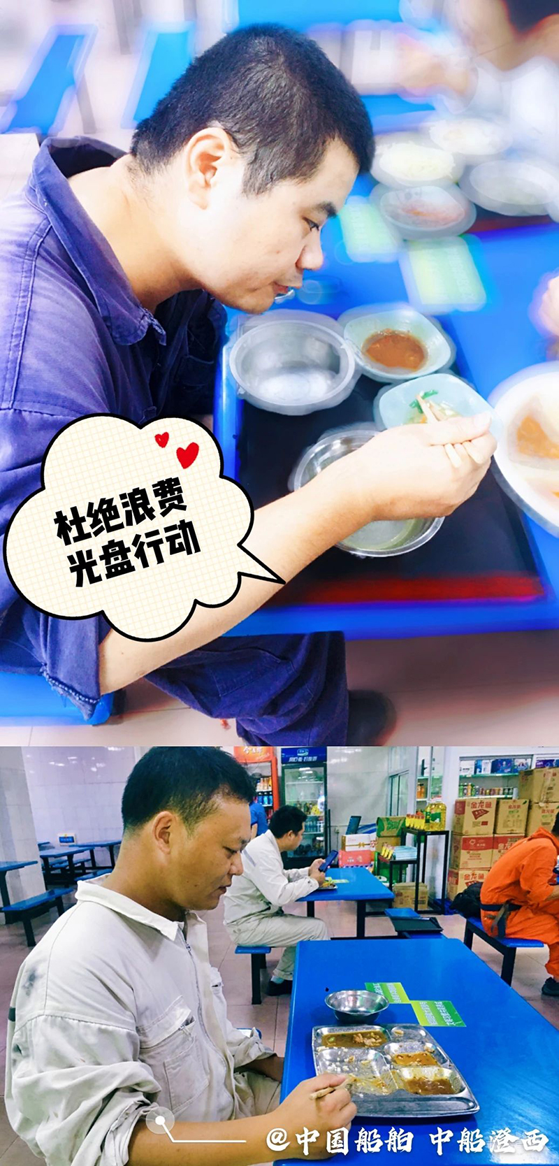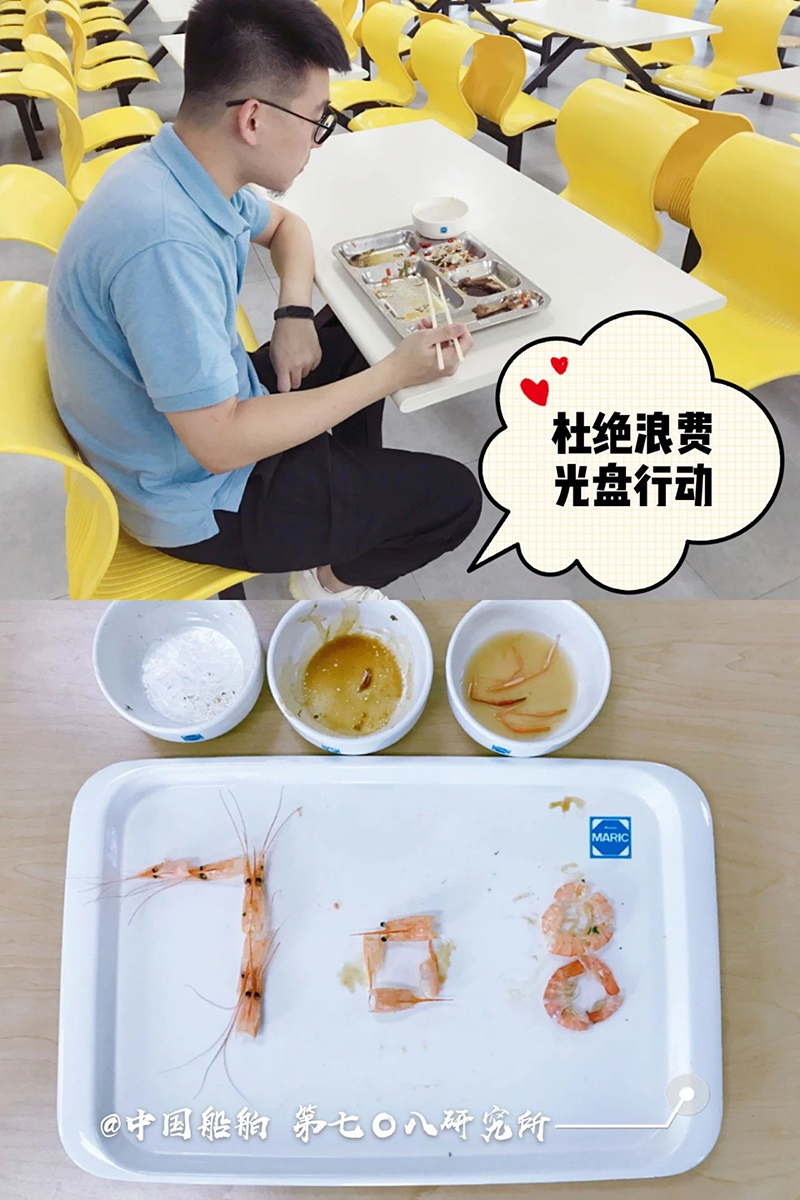 “誰知盤中餐,粒粒皆辛苦?!? 自古以來 敬天惜糧、勤儉節約就是 中華民族傳統美德 中國船舶集團多家成員單位 用實際行動 杜絕“舌尖上的浪費”